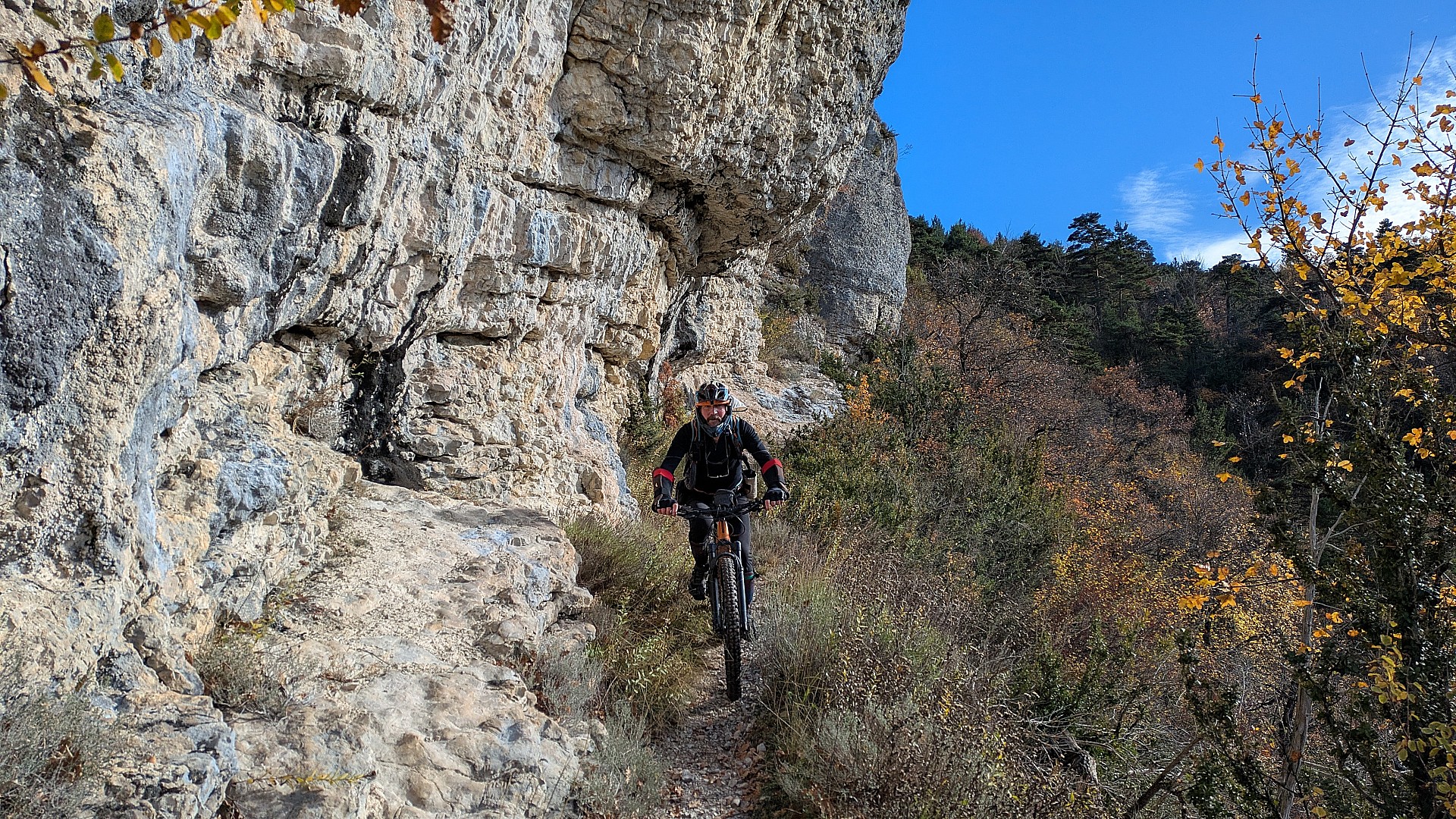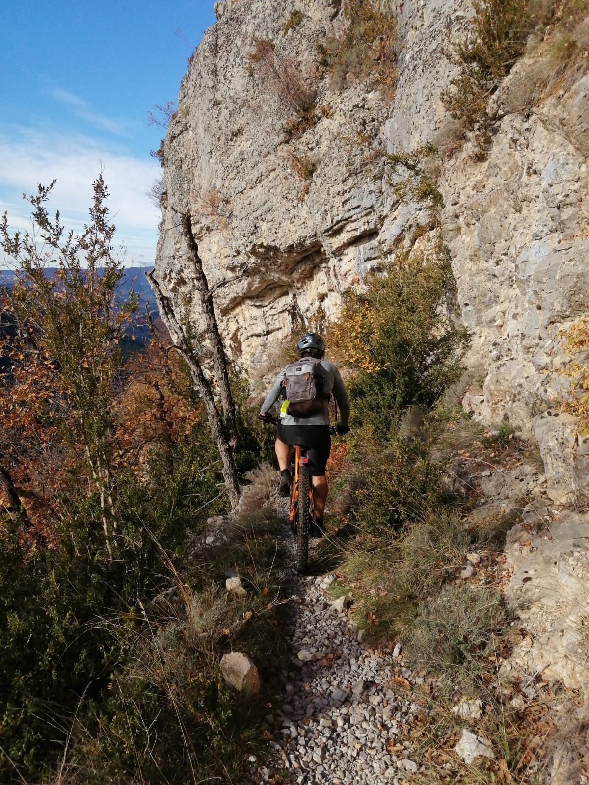 Sentier étroit en balcon, joli passage en partie creusé dans la falaise.