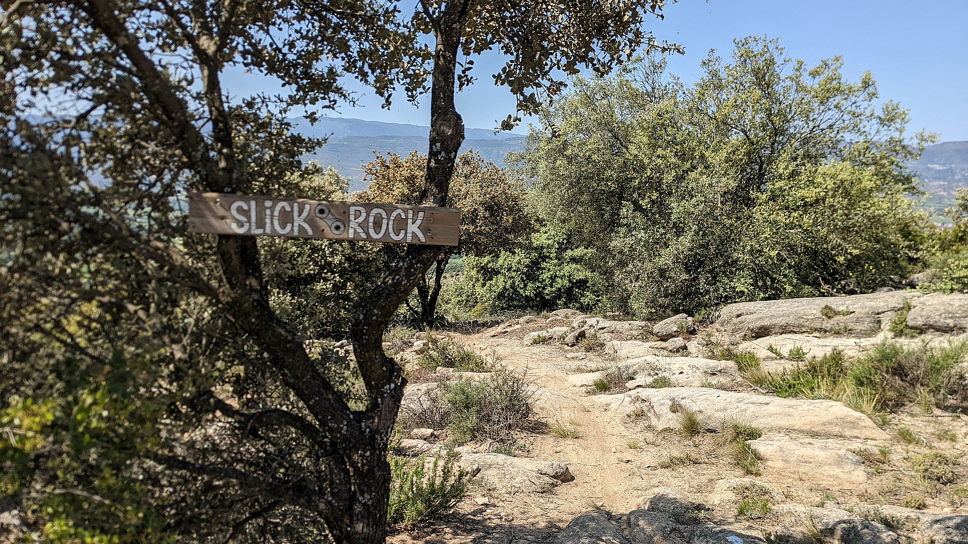 Descente technique à passer de dalles en dalles, en suivant les pointillés blancs bien utiles pour rester sur la bonne trajectoire ! Bon grip sur ces dalles malgré la pente.