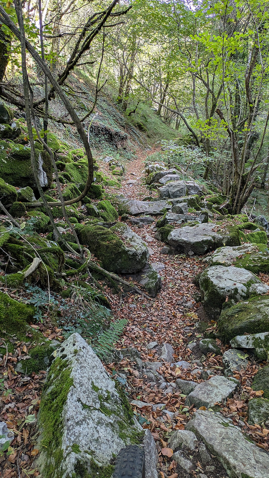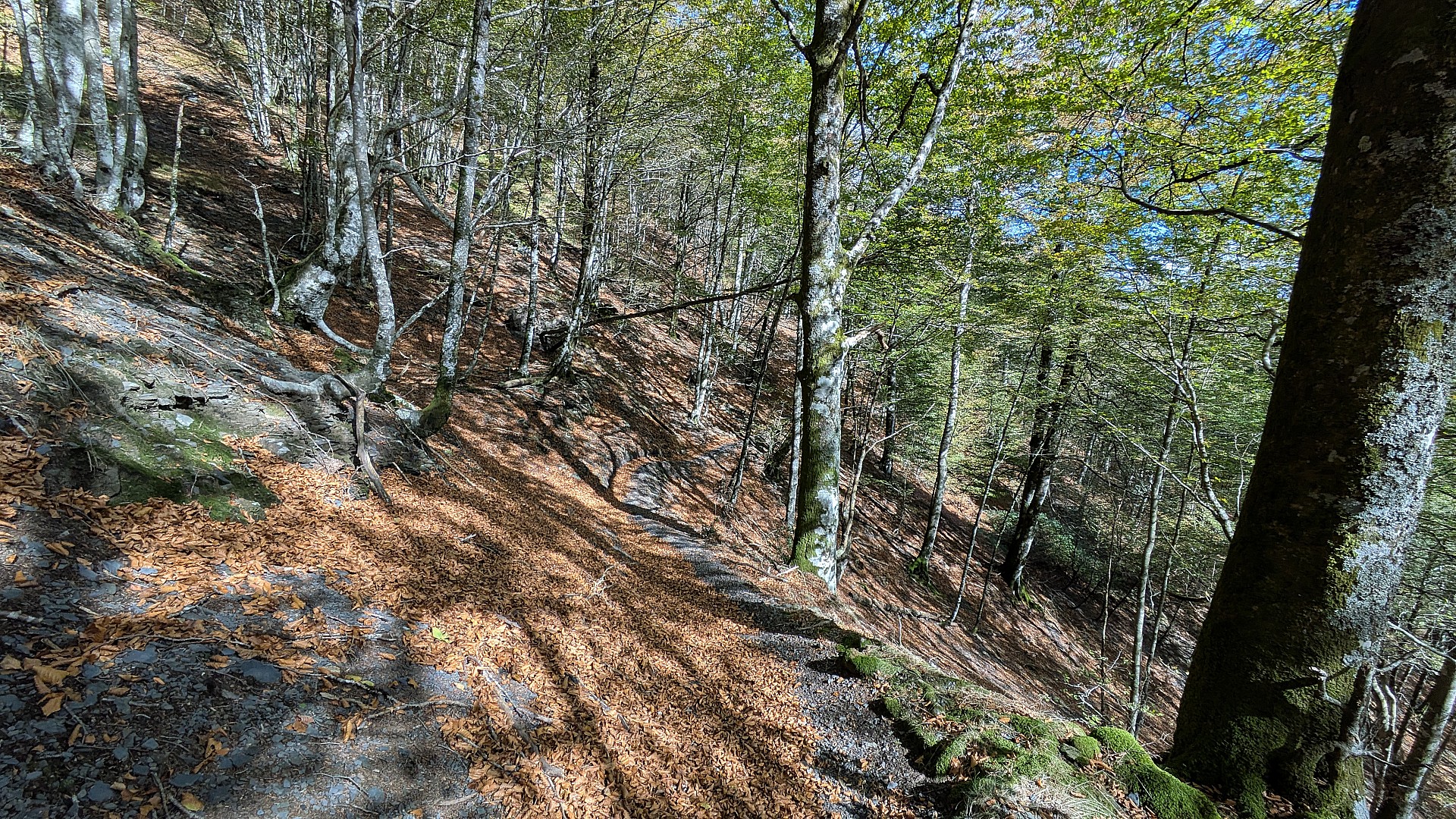 Linéaire en forêt, feuillu et cassant, 4 épingles, du gaz à droite, T3 en haut puis T4 à partir de la ruine.