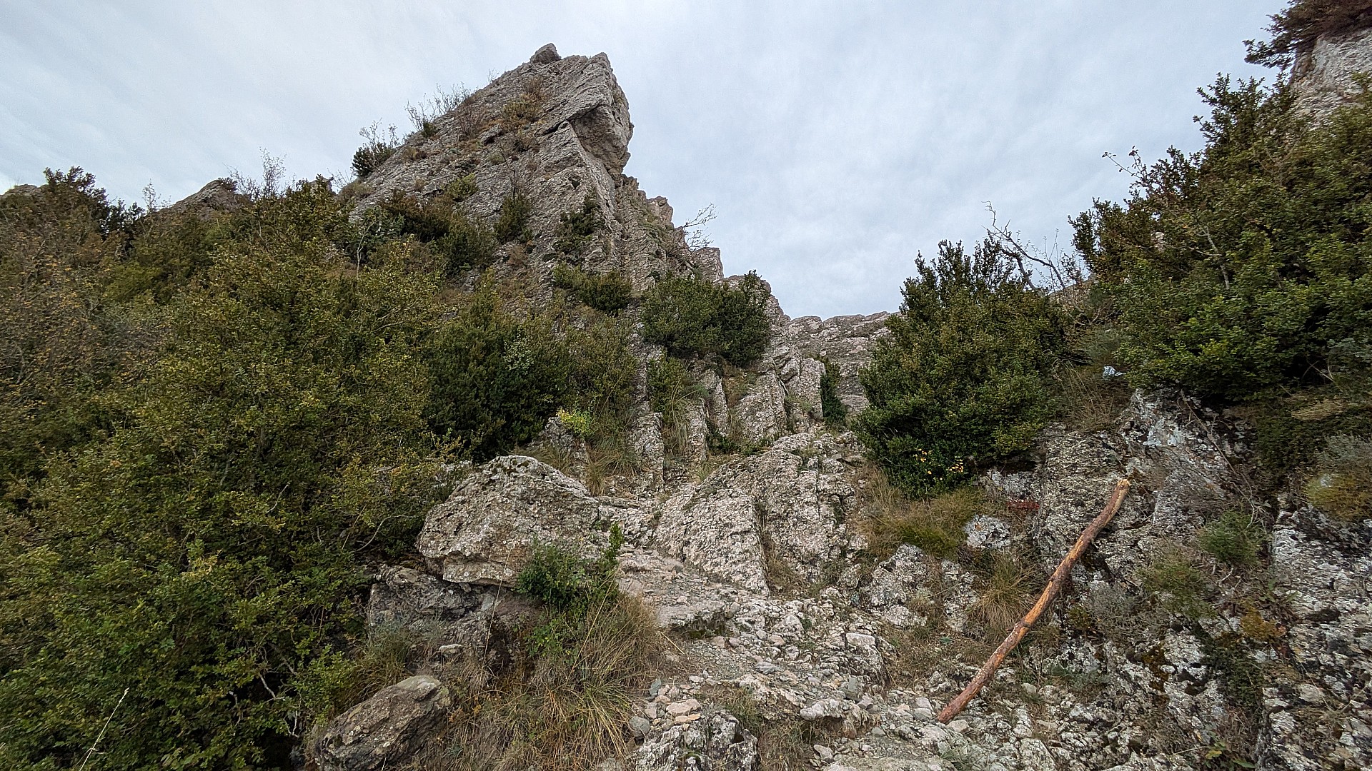 Blocs calcaire polis et marches, des portions lisses et roulantes, 1 court passage NR en montée, des virages parfois techniques et un itinéraire improbable avec son verrou entre 2 falaises où veillent les vautours...