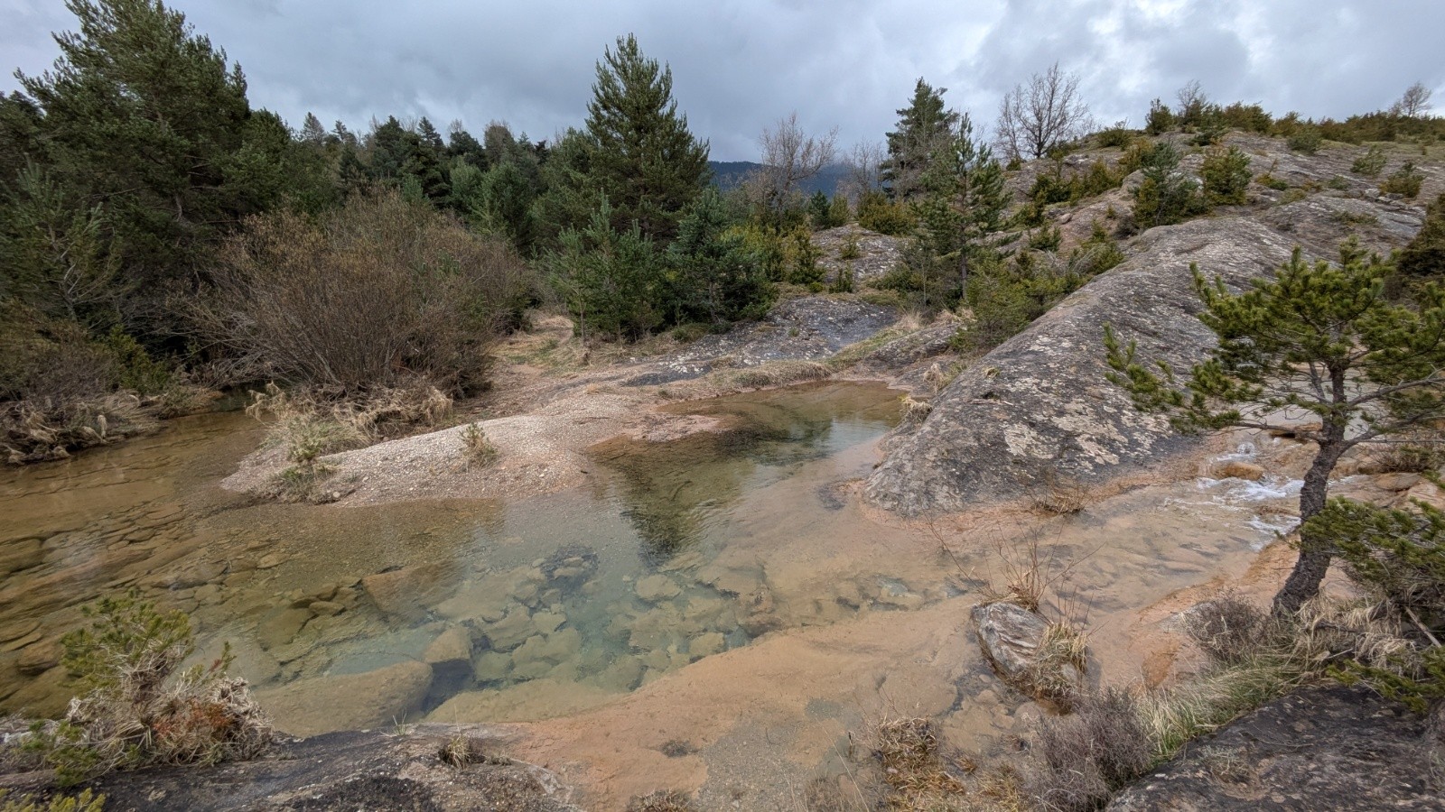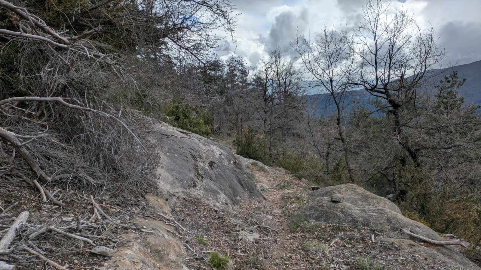 Bon grip sur les blocs et dalles avant que la petite pluie ne s'active afin d'en faire des sentiers savonnette....😜