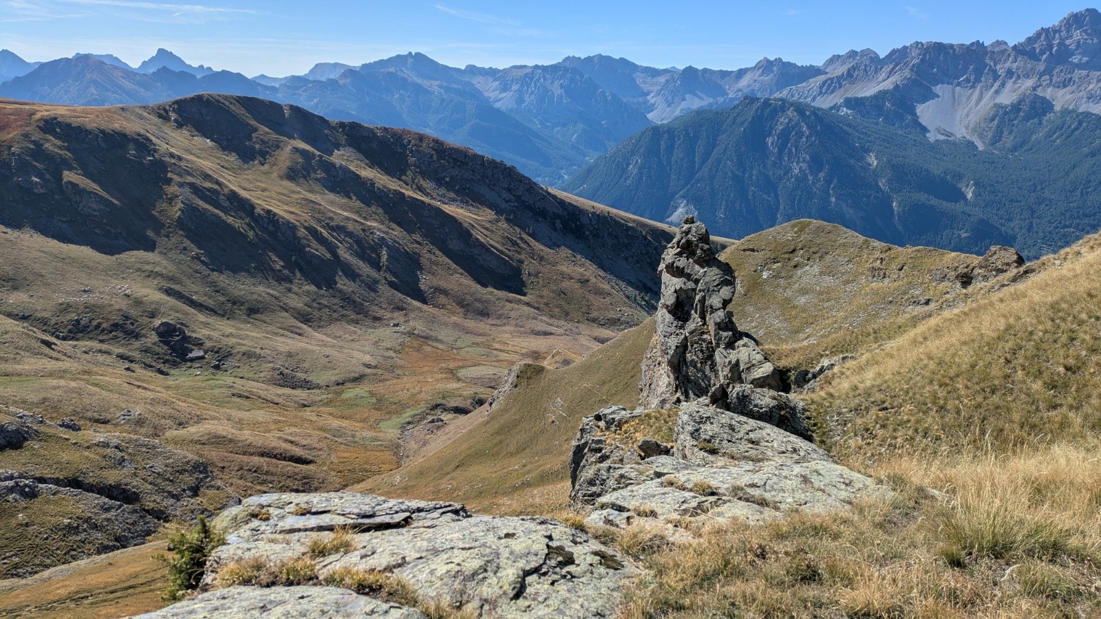 Au sommet, le panorama est fabuleux et j'identifie les sommets et cols déjà atteints et traversés avec la bande du raid des 14 juillet et avec mes potes choisis pour des raids transalpins.