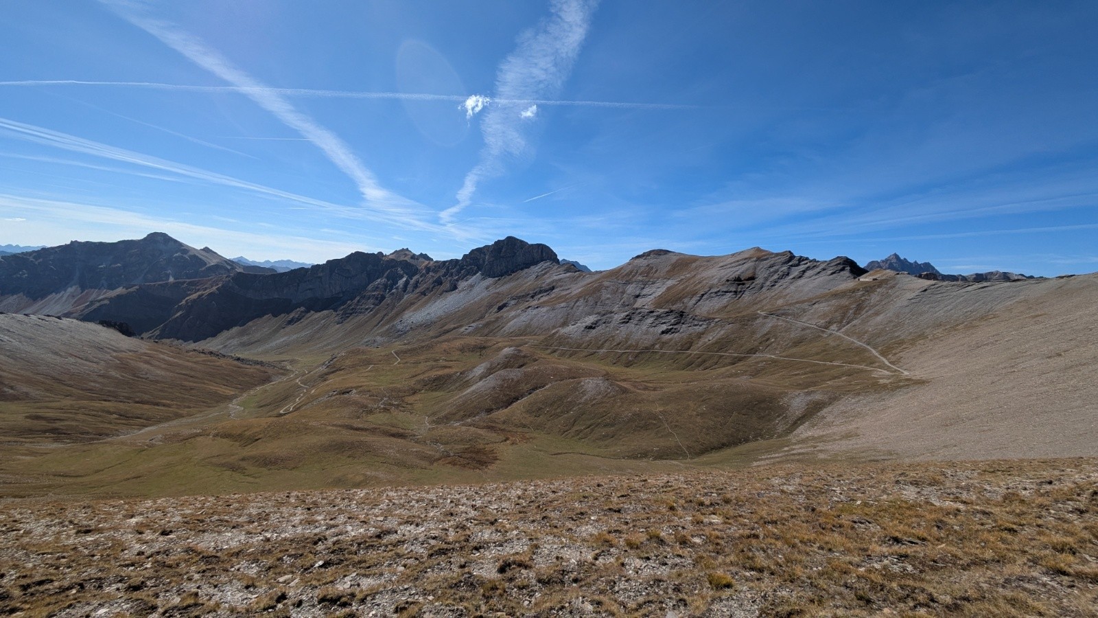 Je redescends au vélo et retraverse toute cette crête qui roule pas si mal en fait, sauf le dévers mal commode.