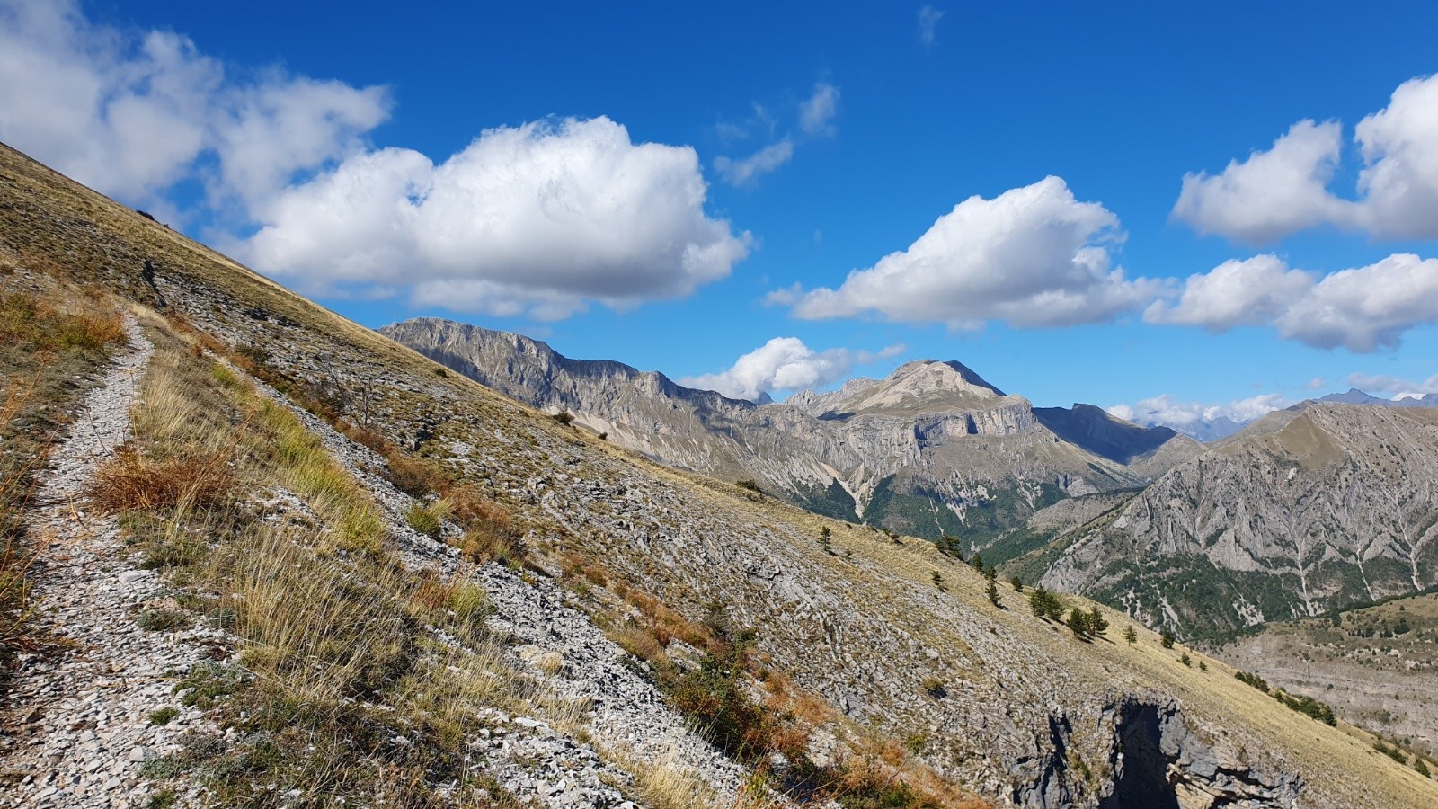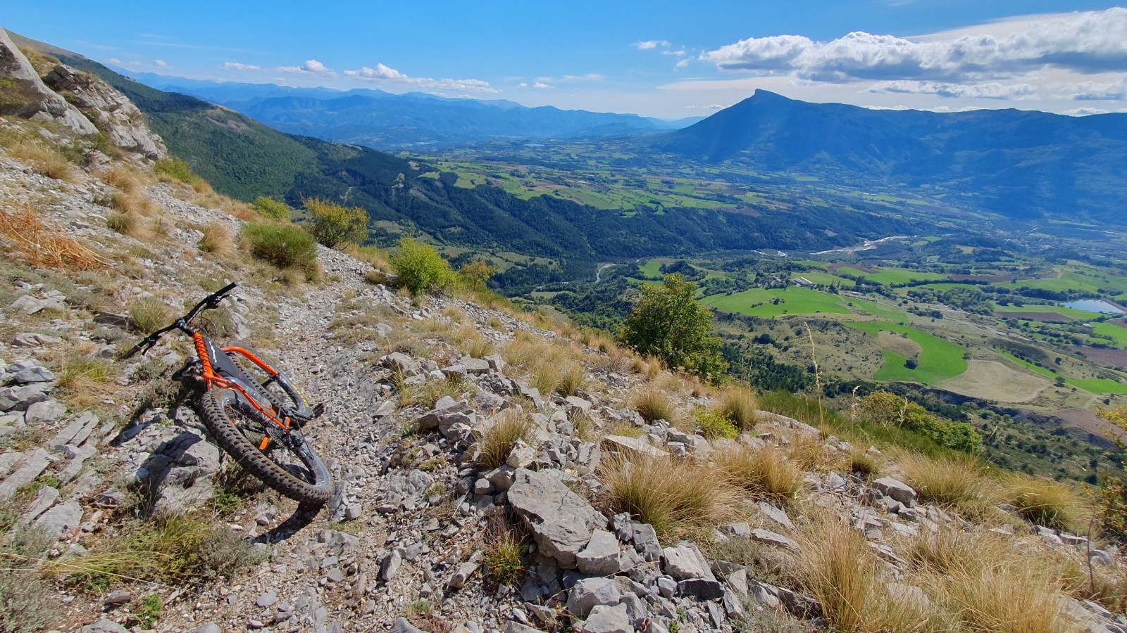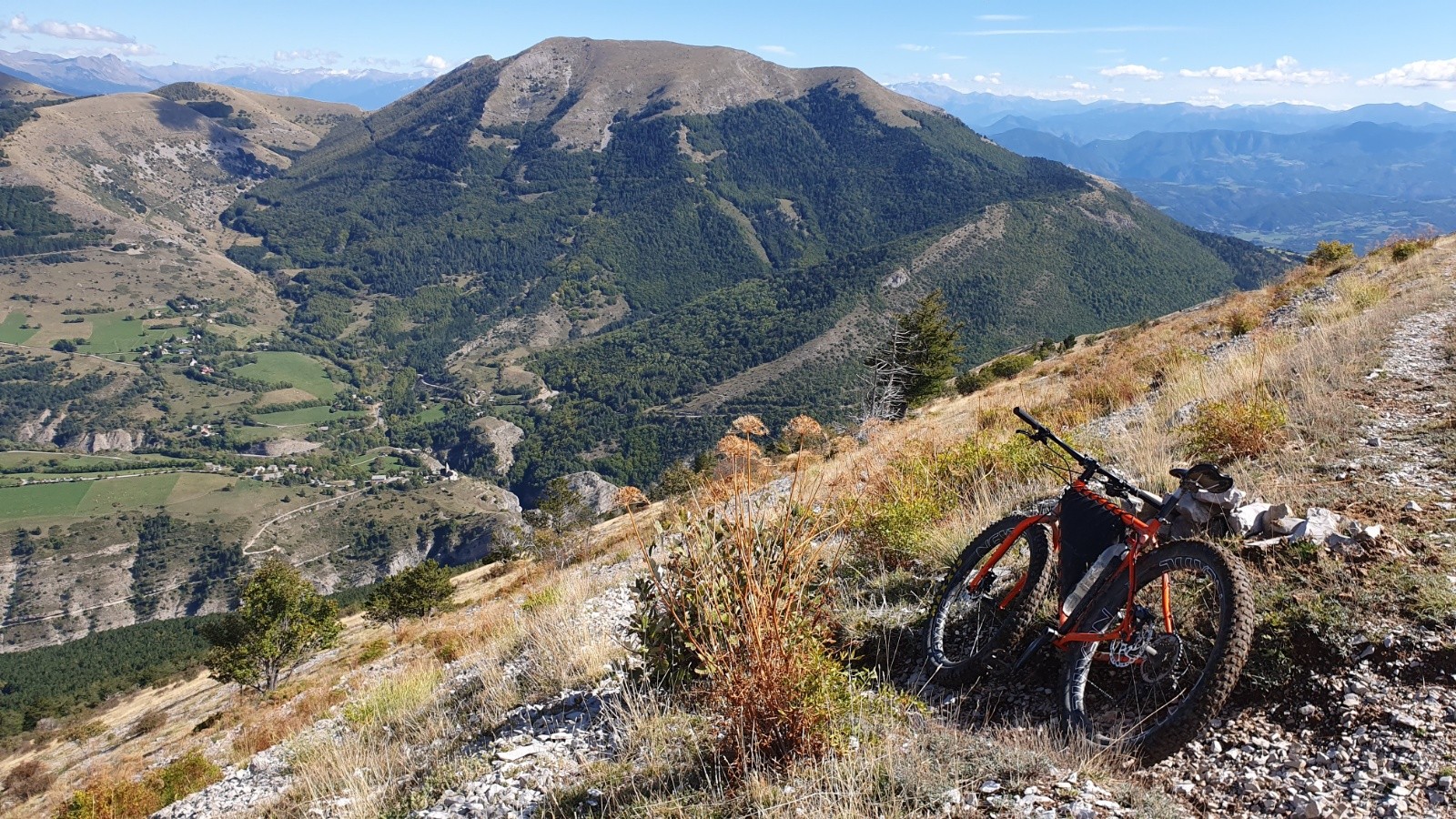 Grand classique pour monter jusqu'au col de Gleize puis le col de Chabanottes. Ensuite, descente plein sud et avant les Tournillons il faut quitter le sentier en s'aidant du GPS pour le col de Ferlieu. La montée à ce col se fera en portage/poussage sur un sentier grandement inexistant. La vue au sommet de ce col est vraiment sympa, je ne le voyais pas si escarpé. La descente coté petit Buech se fait partiellement sur large piste et le reste sur sentier facile (sauf 1 traversée de ravin) mais dans une foret d'ubac magnifique.
