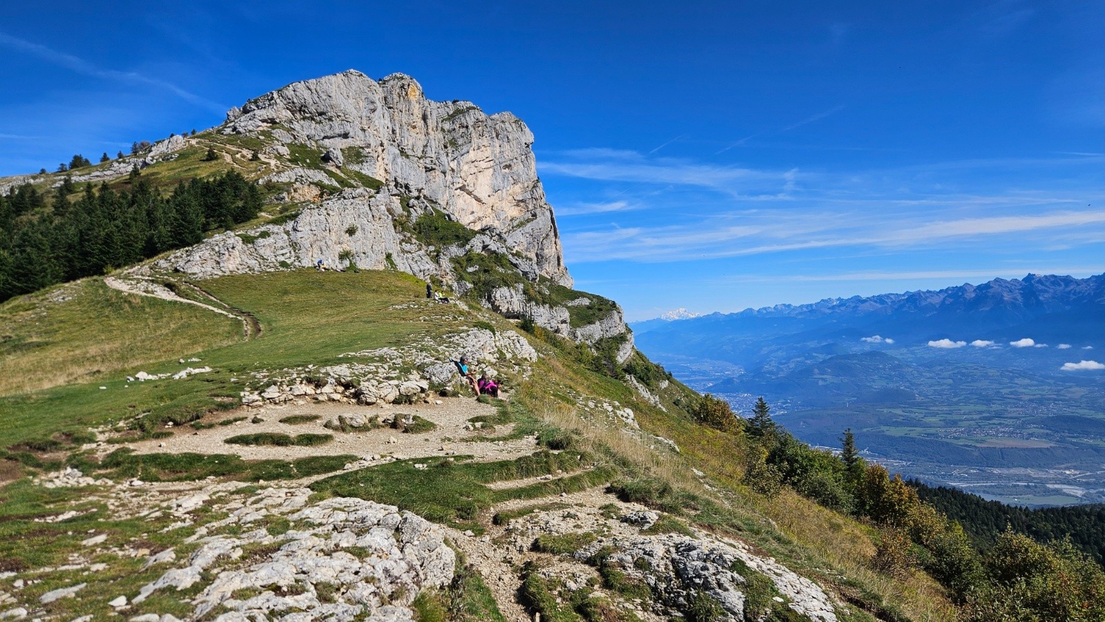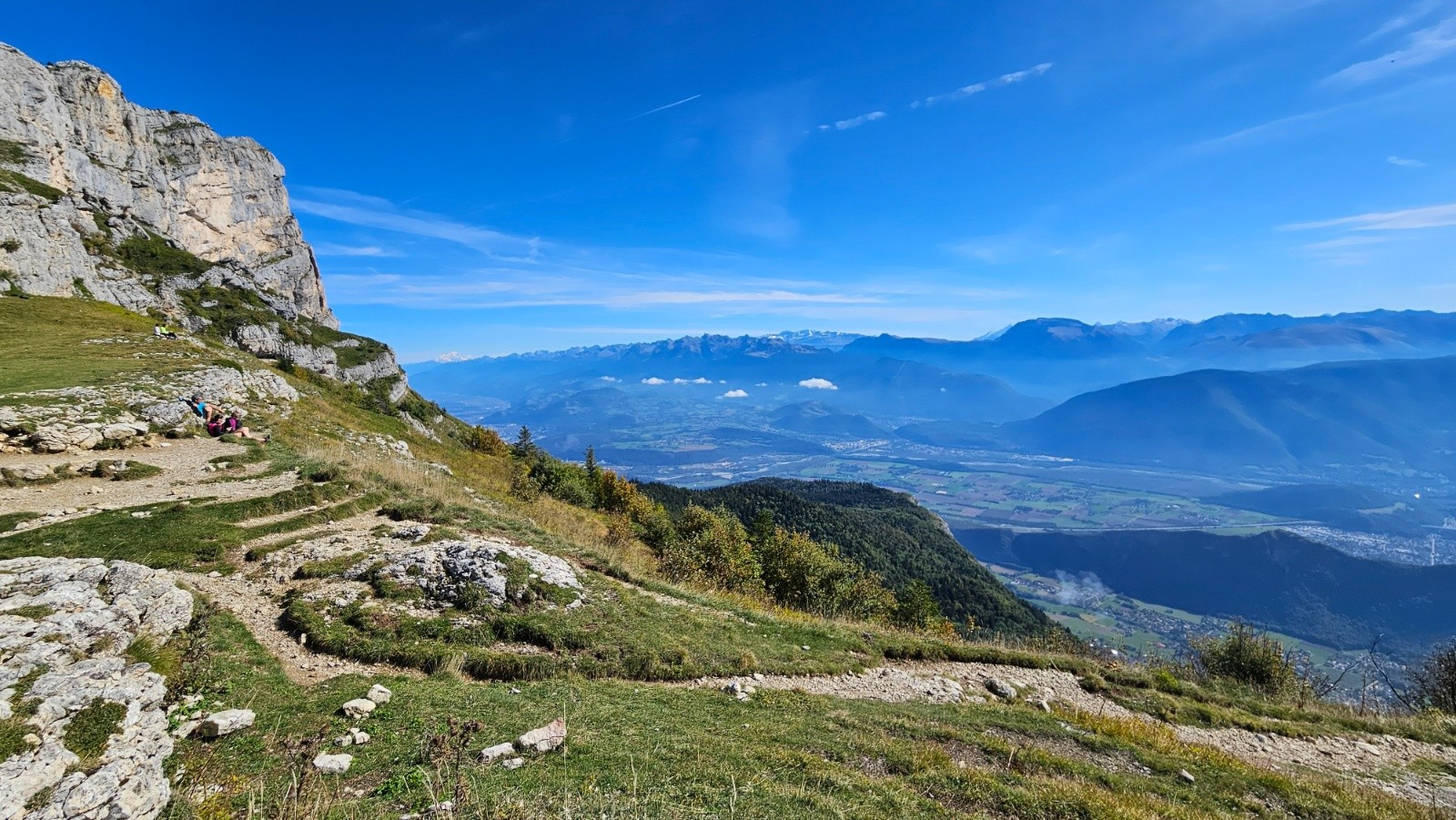 Départ classique, je monte à Lans boire un petit café en terrasse. Toujours un peu de route à faire. C'est pas le plus cool, mais ça va vite. Je poursuit par la route jusqu'au parking des Allières. Que de monde ! Montée tranquille dans l'herbe à l'auberge. Encore quelques coups de pédale et mise en route du mode sherpa, presque jusqu'au col. En haut à midi, pile l'heure du pique-nique. Idéal pour profiter de la vue. C'est trop beau là-haut !!