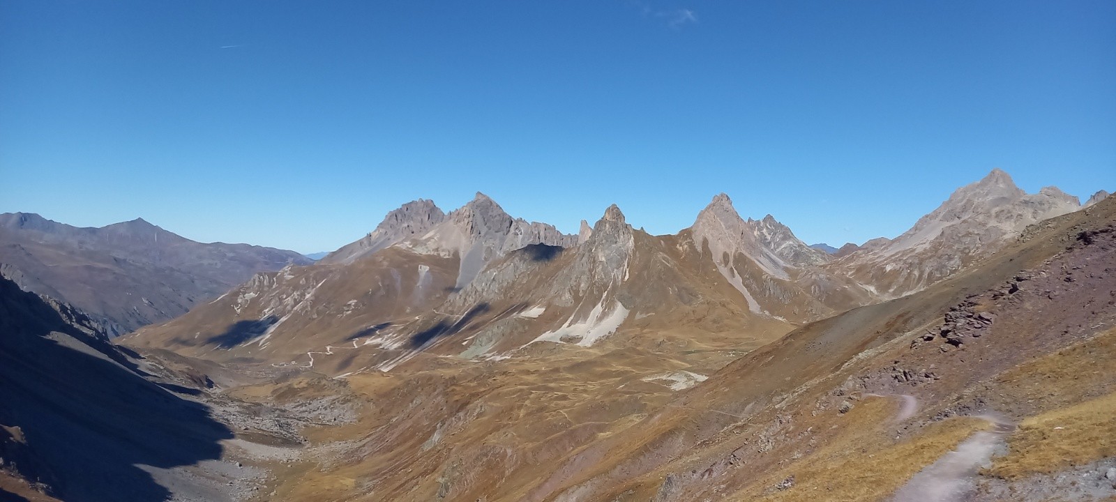 Pause photo au col, un petite descente et grosse montée par la piste pour rejoindre le Lautaret. Les vaches sont en train de redescendre et les chamois reprennent les paturages.