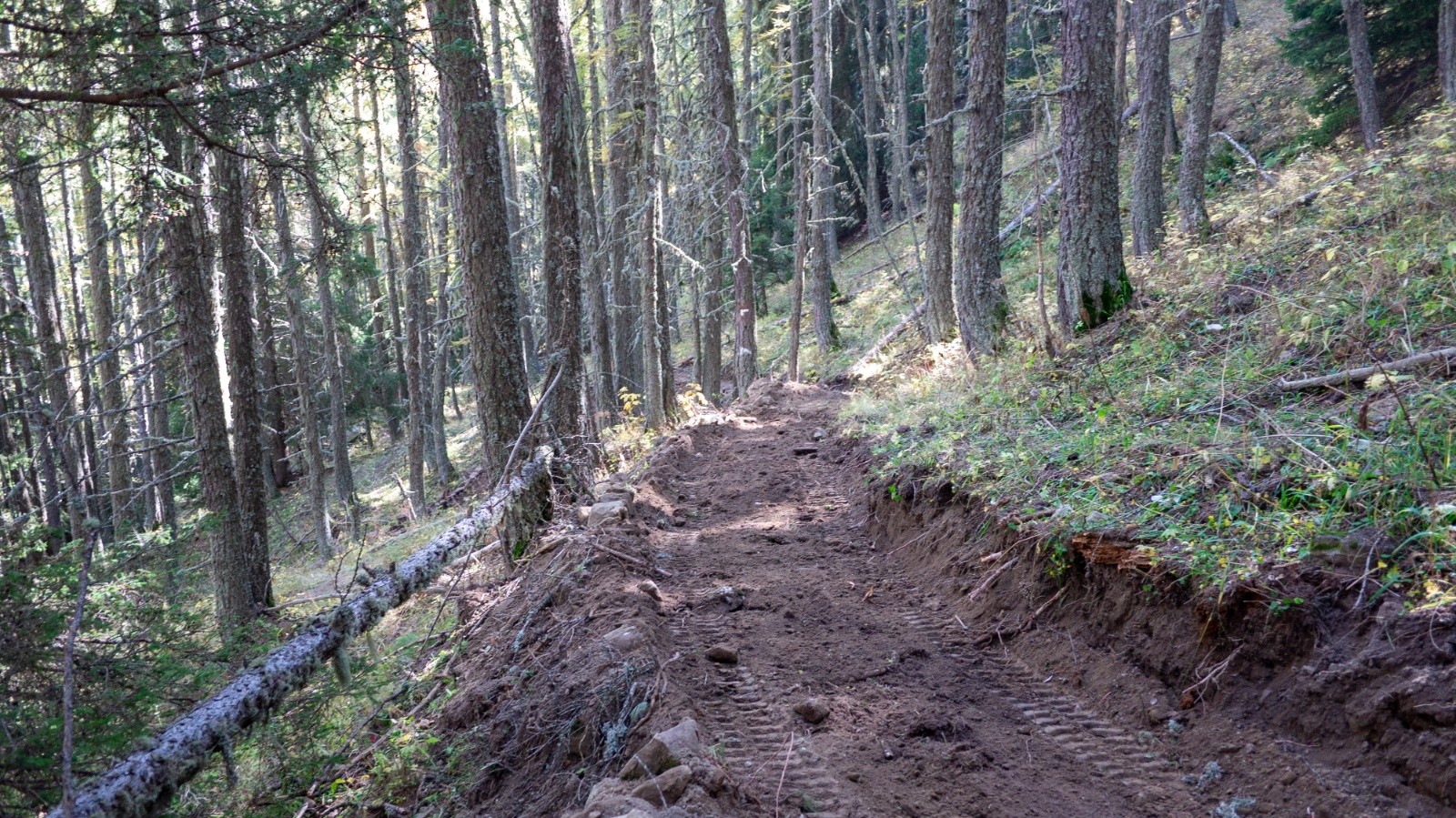 Le reste de la descente fut plus traditionnel, mais de grande qualité : un superbe sentier bien tracé, alternant entre portions cassantes et joueuses, et des passages techniques et exigeants. L'environnement était exceptionnel de bout en bout, jusqu'à l'Ancienne Maison forestière de Plan Bas. J'ai poursuivi en direction du Plan de Gautier et j'ai tenté d'expérimenter une alternative par un ancien sentier non répertorié sur IGN, partant de Défens des Vieux. Malheureusement, cette section était en cours d'élargissement par une mini-pelle. Dommage, il faudra trouver une autre alternative !