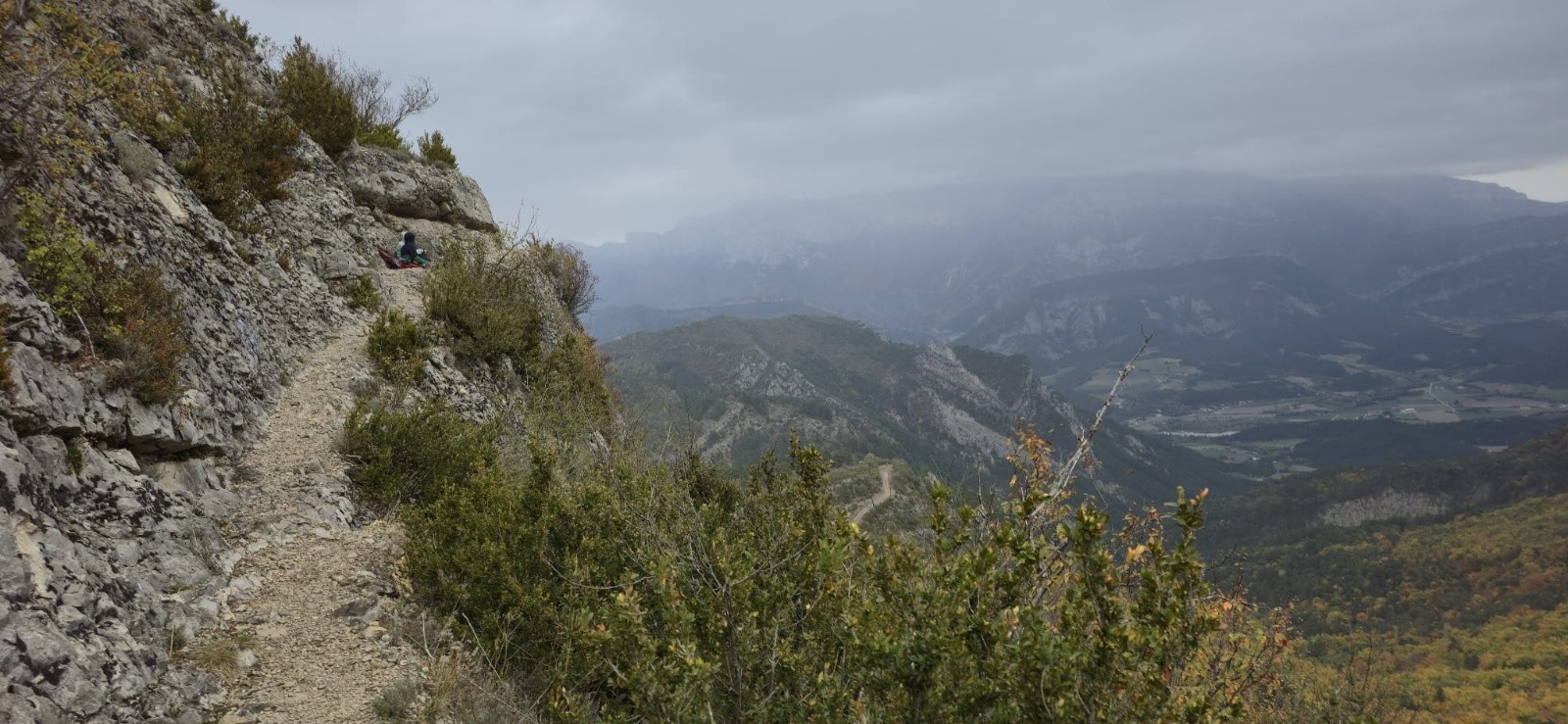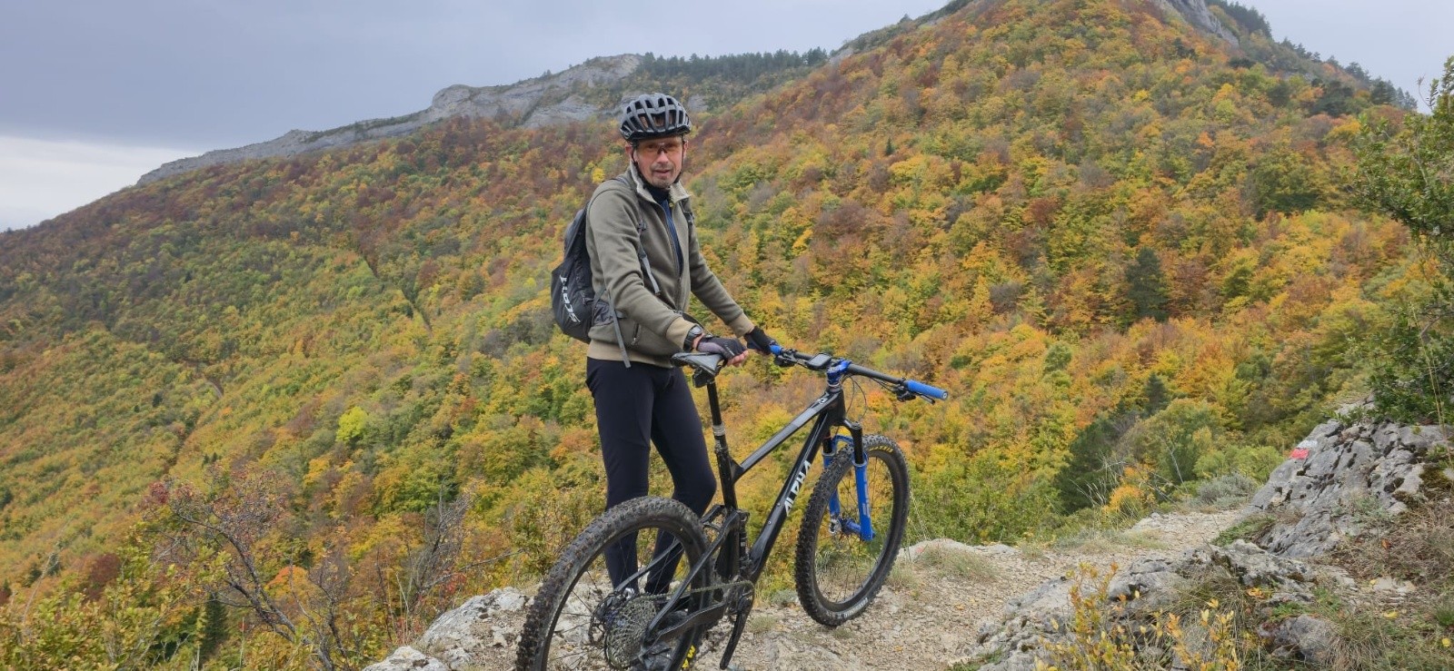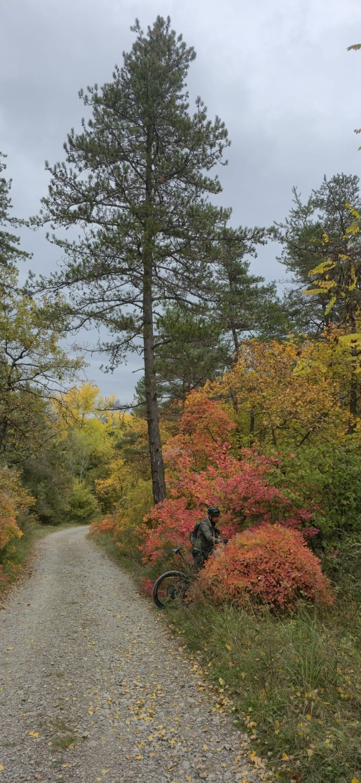 Petite virée dans la Drôme. Et avant l'arrivée de la pluie prévue lundi, nous décidammes de faire la jolie boucle au-dessus de Die, postée il y a quelques jours par Ticaillou et qui a noté les sentiers 10/10 ! Il fallait vérifier tout cela et je confirme que vraiment c'est magnifique et d'une roulabilité excellente sur tous les singles, pente très progressive, belles épingles, tapis de feuilles... que du bonheur !
