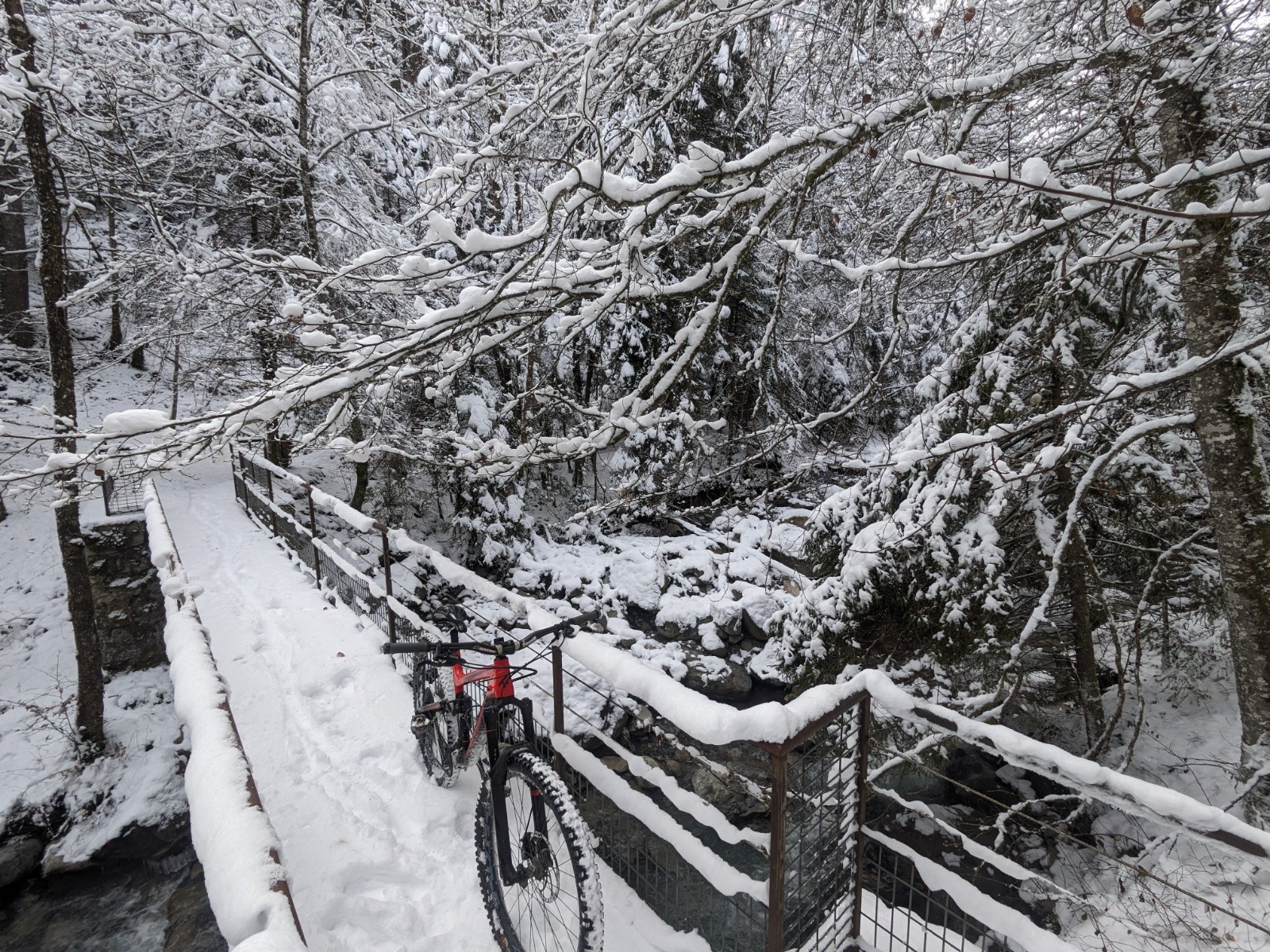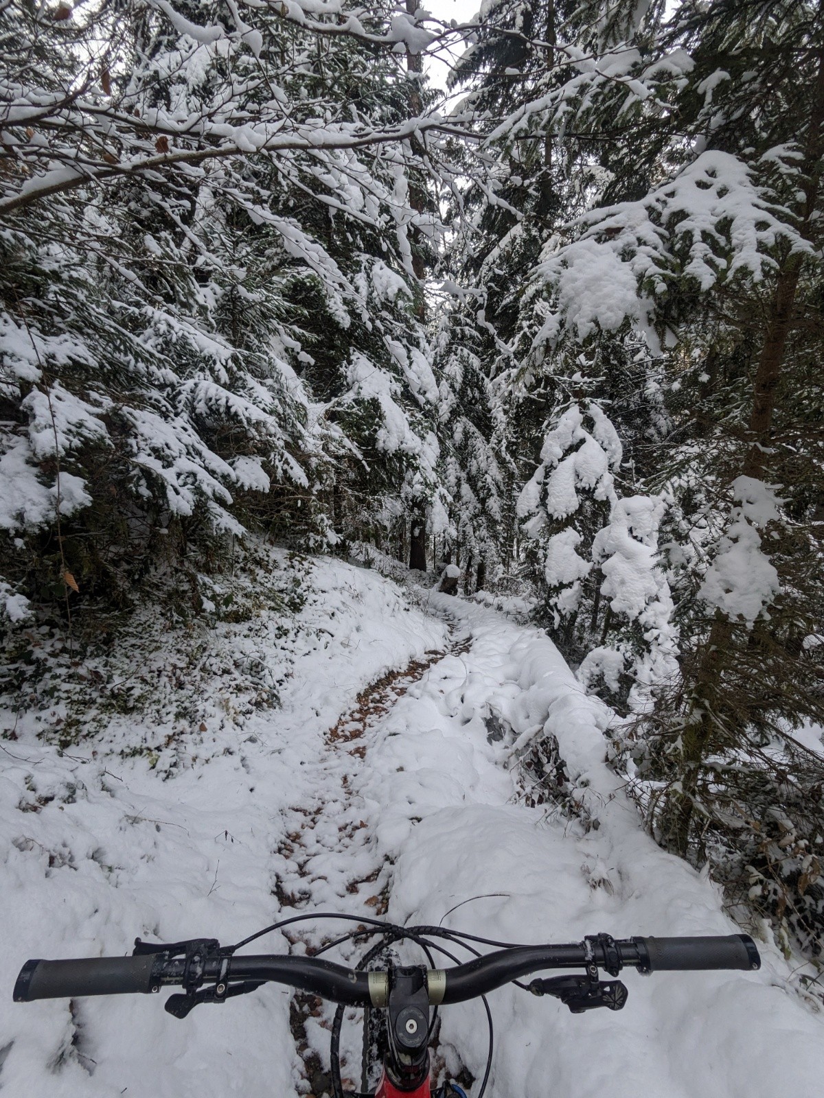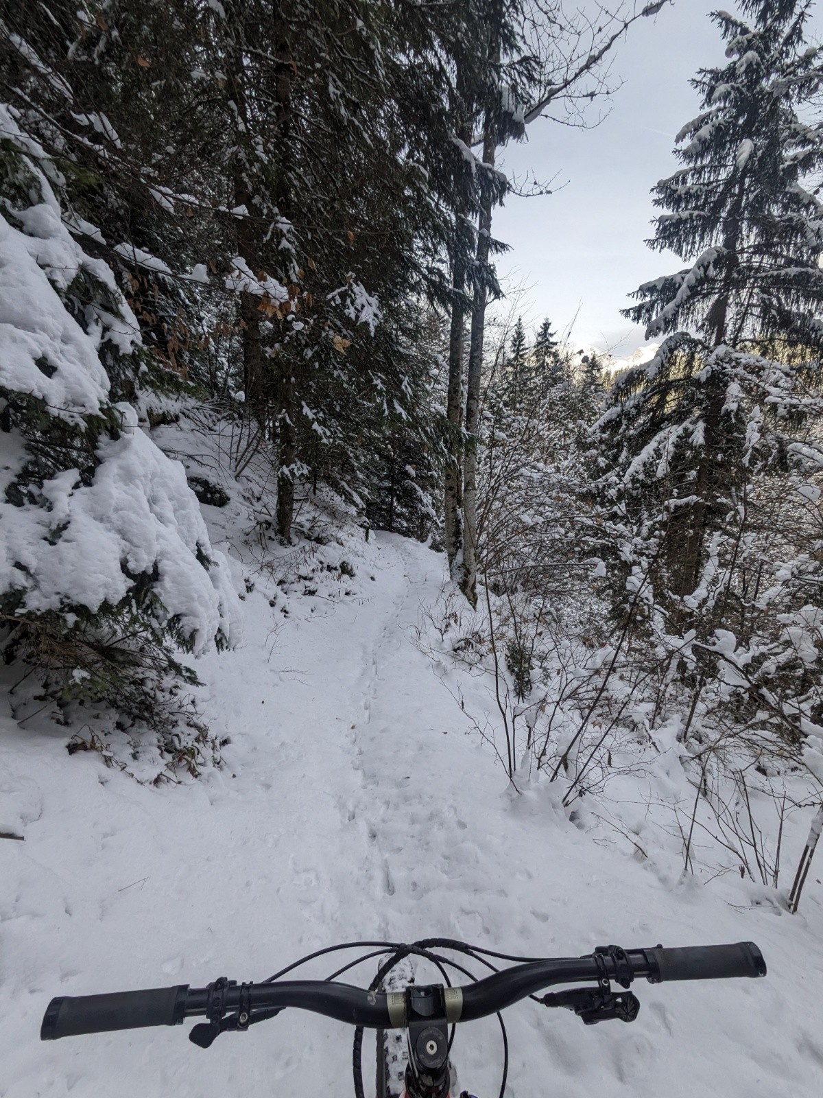 Petite sortie ce matin, en restant local, j'ai préféré profiter de la neige en VTT plutôt que d'aller racler les skis a la Sambuy.