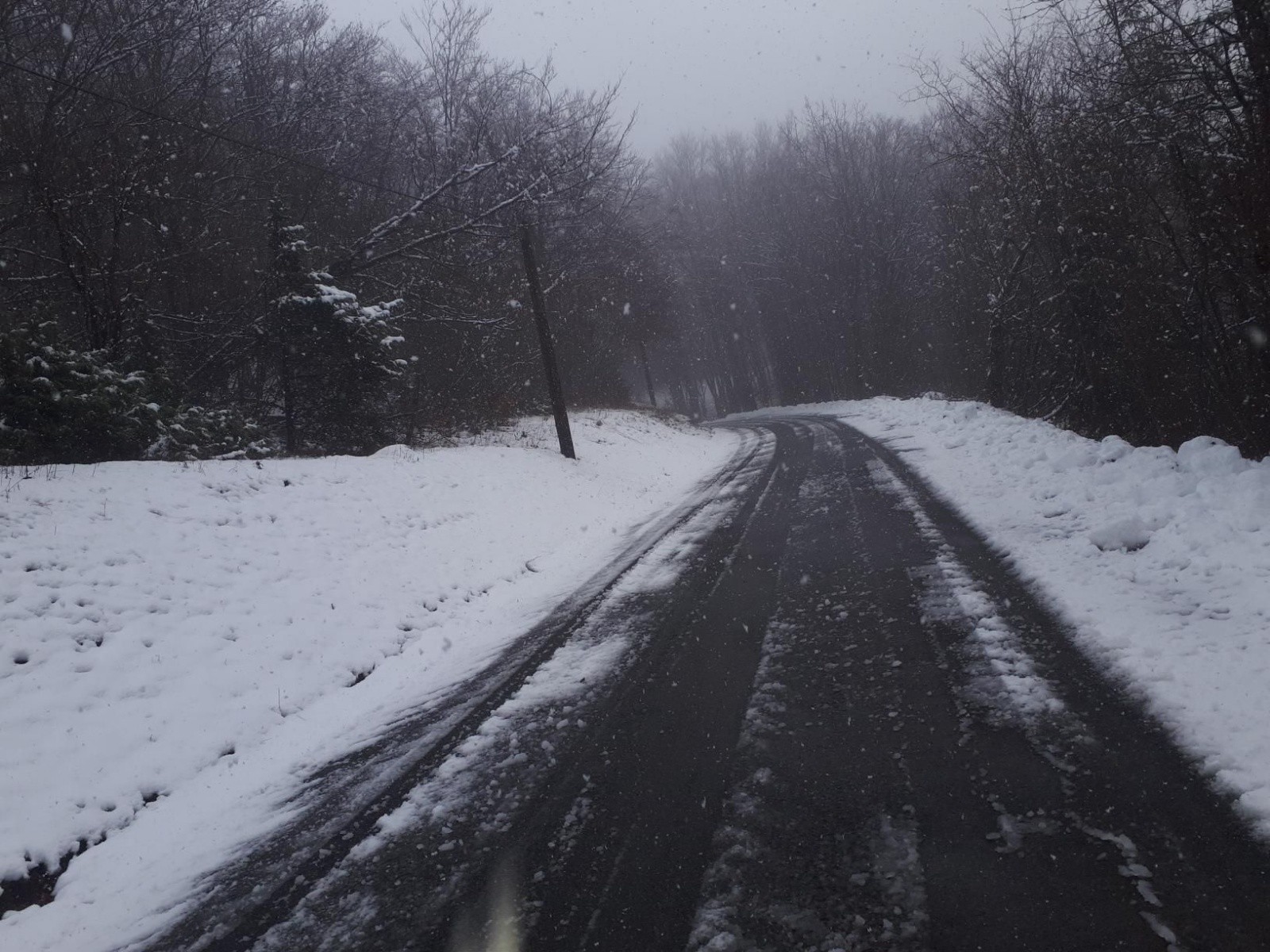 Départ à la limite pluie neige, entre 3 et 50 cm de neige par endroit. bon sur le bas, peu roulable sur le haut avec une poudreuse compactée par le vent. Montée sur la route nickel.