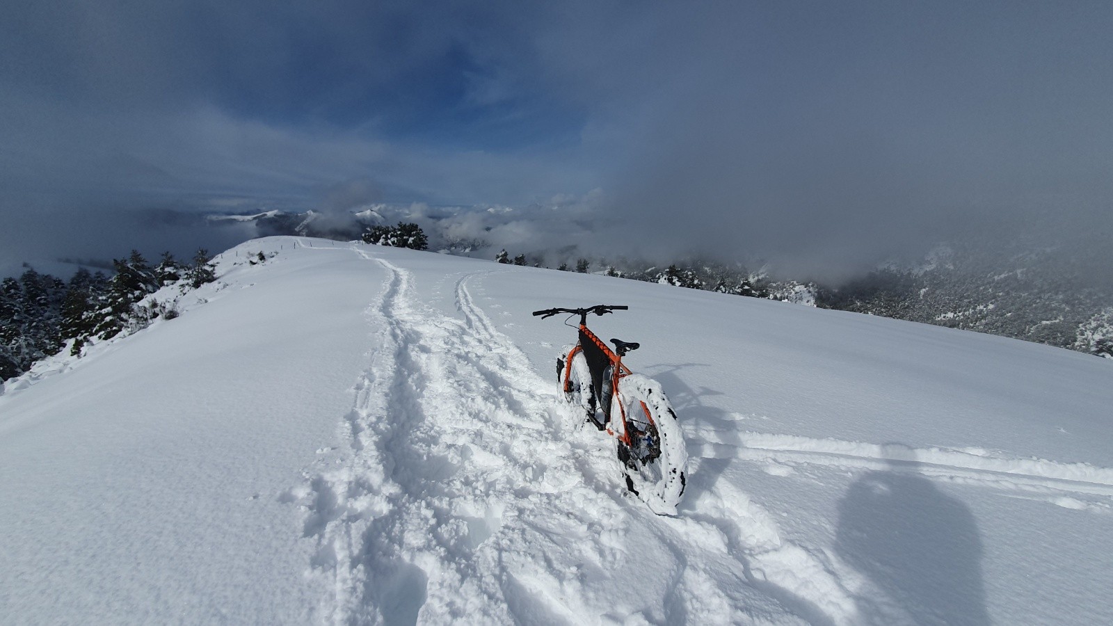 Montée bien roulante essentiellement sur routes enneigés jusqu'au piémont de Céüse, puis je tente de rejoindre les pistes forestière pour faire une première descente sur les Guerins. Je renonce rapidement : pas de trace et déjà trop de neige. Même dégonflé à bloc cela ne monte pas. Je fais demi-tour pour rejoindre les Guerins directement.