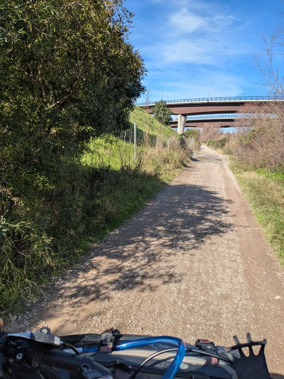 Apres j'étais stressée d'avoir vecue cette situation désagréable - je n'avais qu'une envie : trouver le calme, mais sortir de Barcelone prend un peu de temps et c'est long - Je me retrouve coincée entre autoroutes et voie ferrée - un pure brouhaha - avance petit caillou - au loin les montagnes de montserrat me reconfortent -