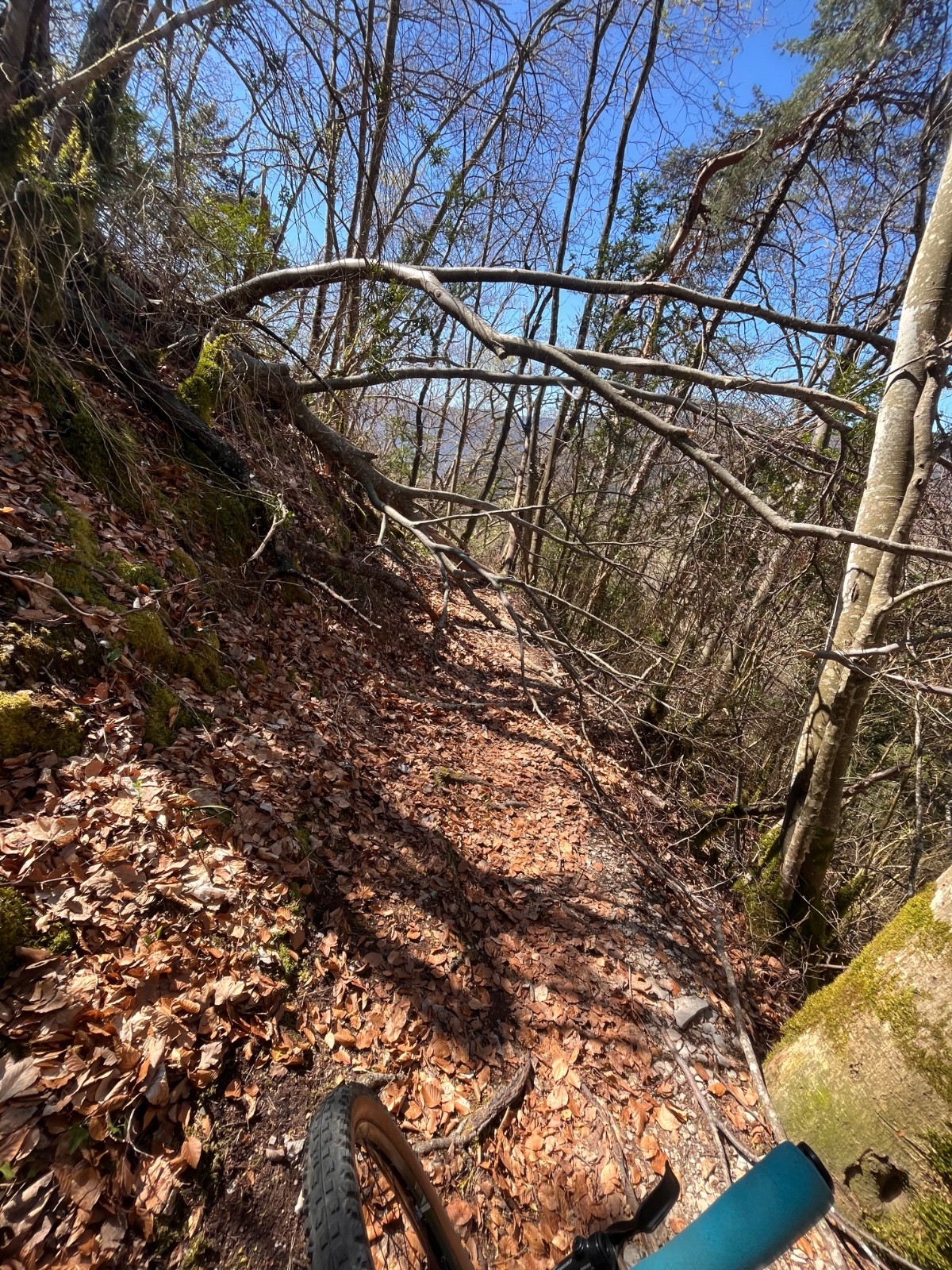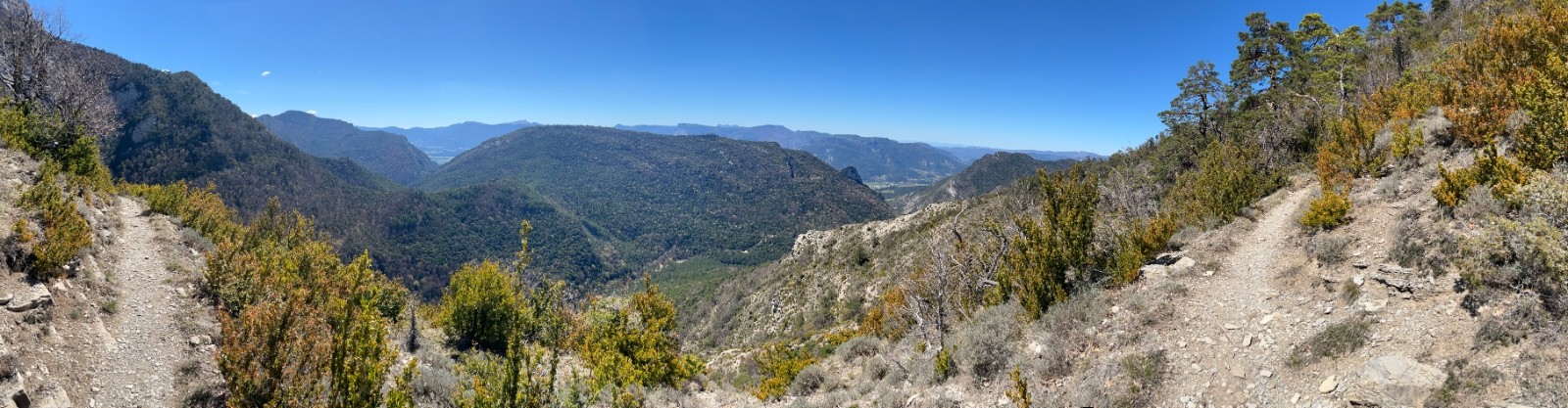 Terrain sec avec encore des arbres en travers et sentiers délabrés