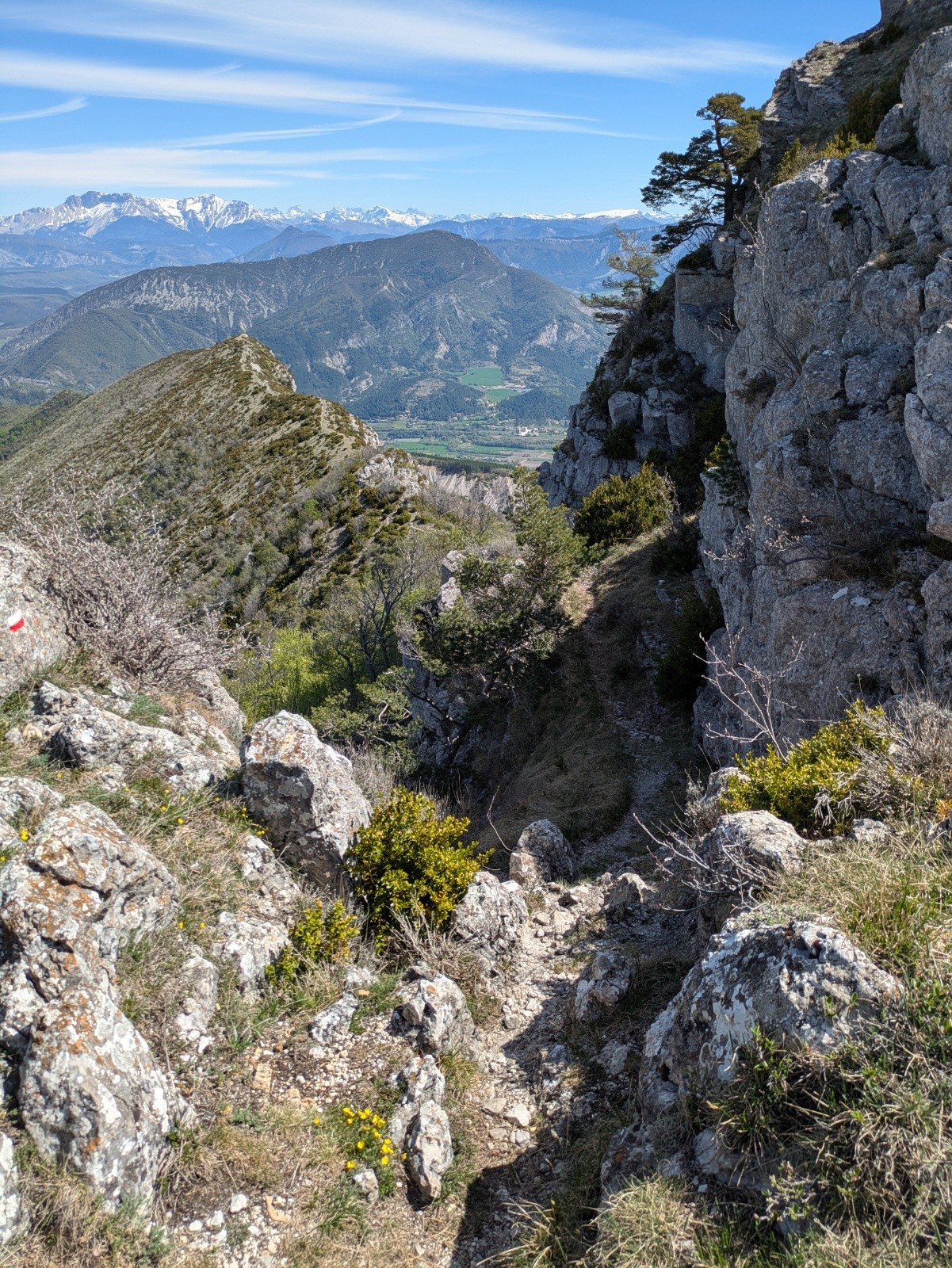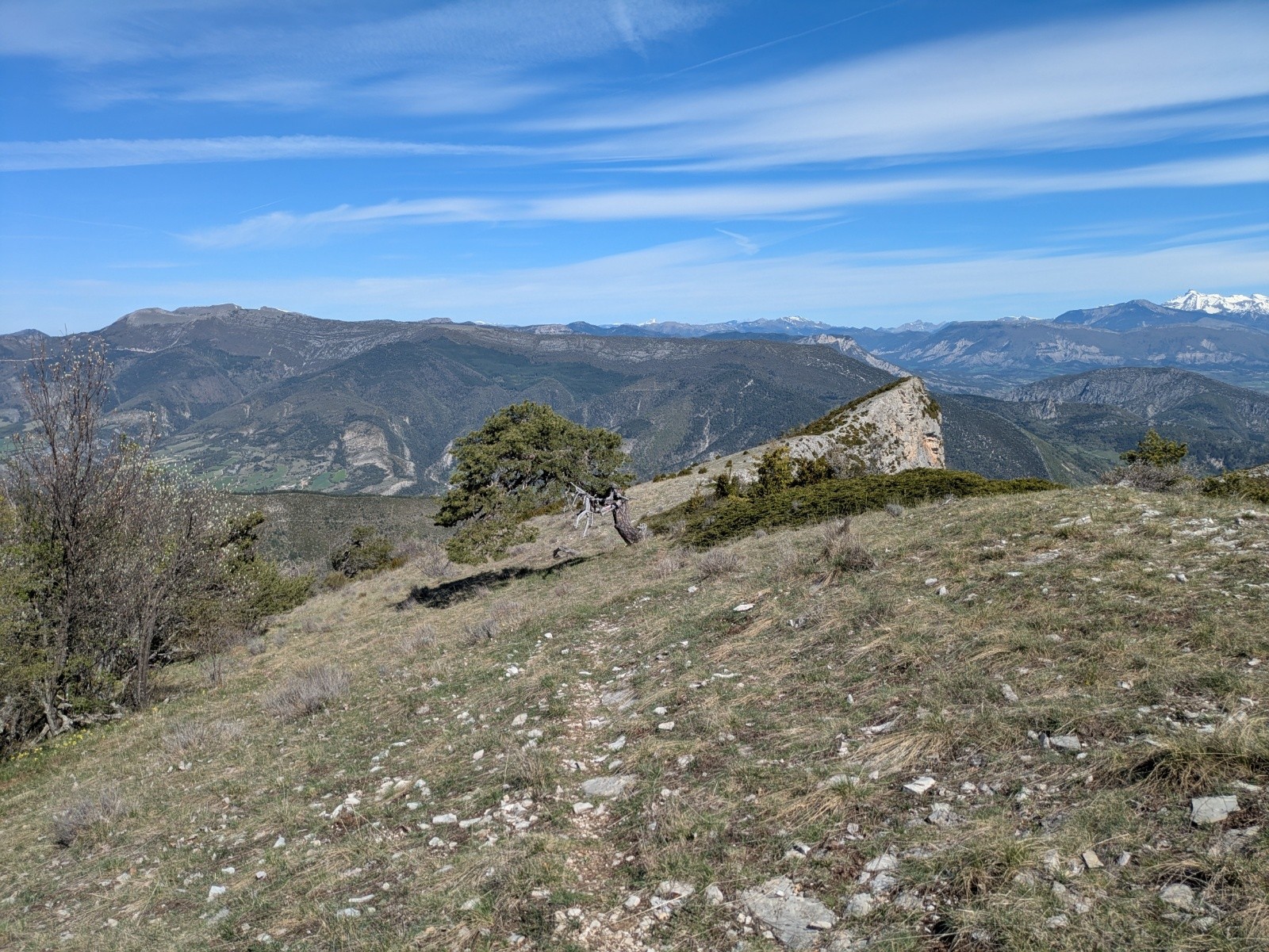 Au bout de la crête, j'ai hésité à prendre le sentier qui descend versant est. Très peu de traces de ce côté, pas envie d'arriver dans une galère, je prends en ouest. Sentier à épingles très sympa, à faire. Seul bémol, le final sur piste où on abandonne un peu de dénivelé.