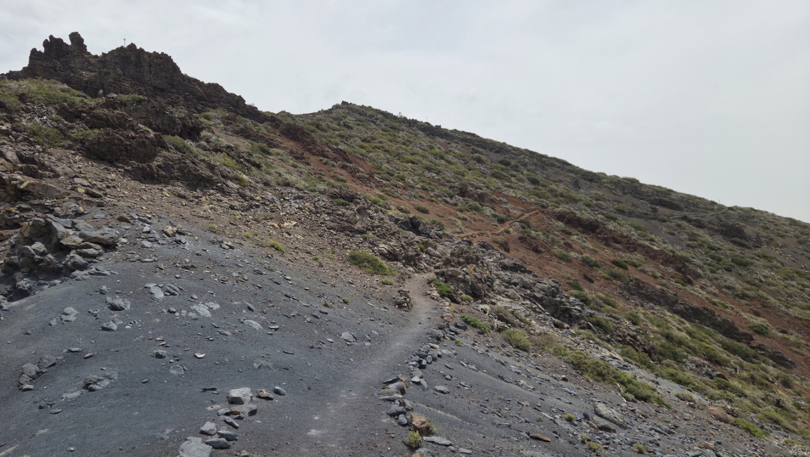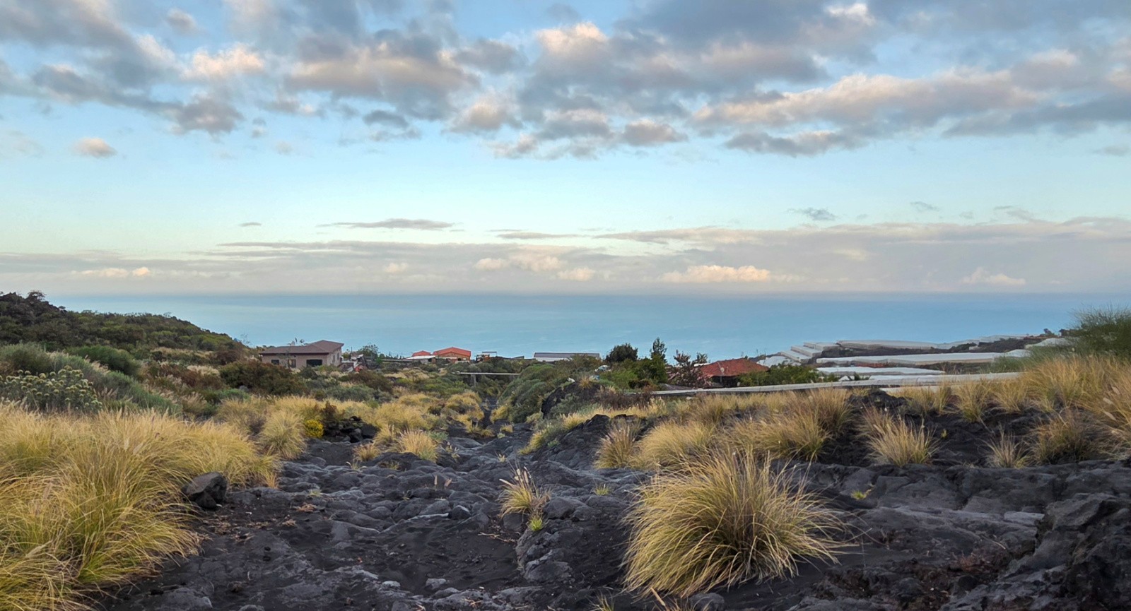 Sauf que la trace date de quelques années, et qu’entre temps, le Cumbre Vieja est entré en éruption. Je tombe très vite sur une coulée impressionnante qui m’oblige à faire demi-tour et à revoir mes plans. J’avais entendu parler de l’éruption de 2021, mais sans en mesurer l’ampleur… Une coulée de plus de 6 mètres d’épaisseur sur plusieurs km. 3000 maisons ou bâtiments engloutis… Impressionnant !
