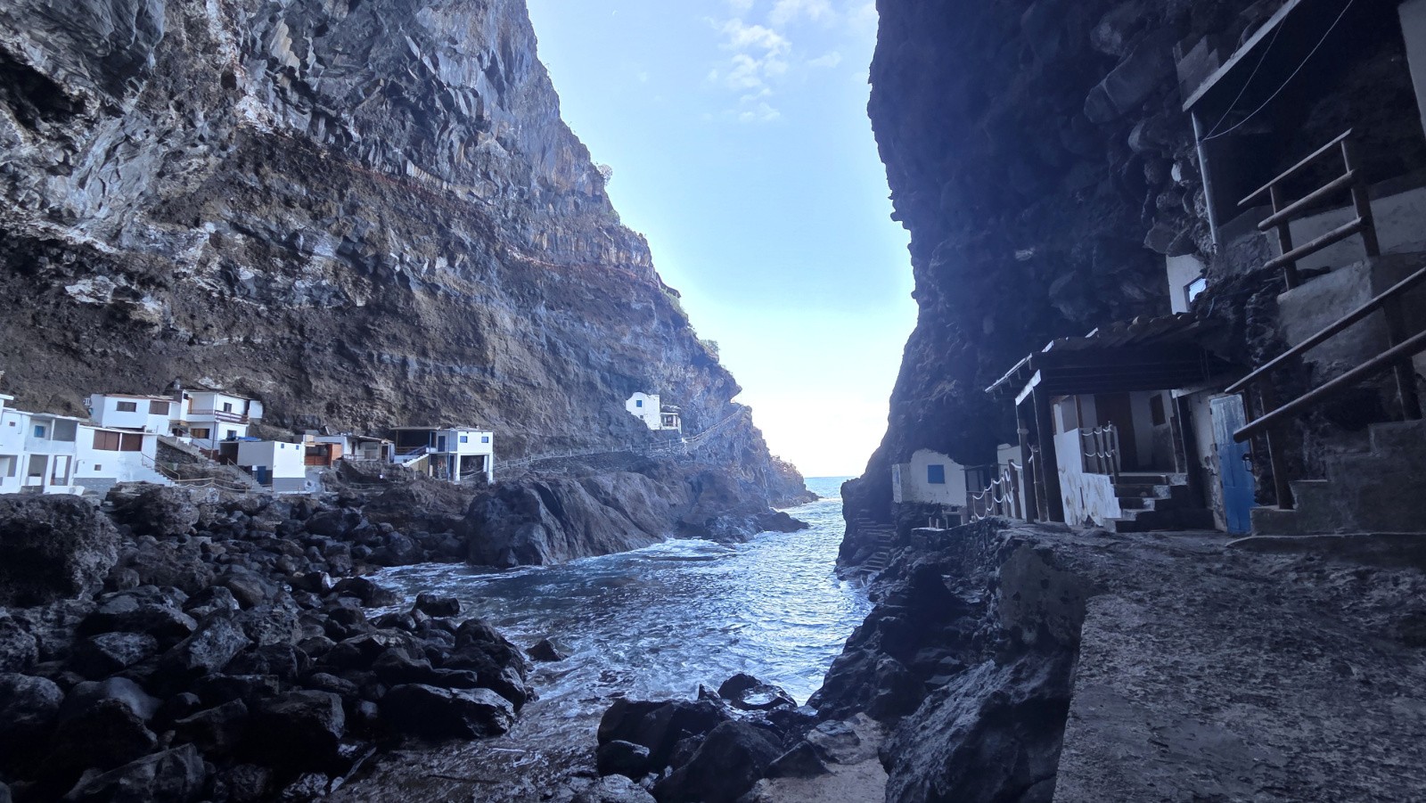 Je reprends dans la foulée la route vers le nord pour une deuxième boucle. Descente technique (bien caillouteuse et fuyante) vers le petit village de pécheur taillé dans la roche « Porís de Candelaria ». Retour par des ruelles au milieu des bananeraies, avec des pentes à 25%...