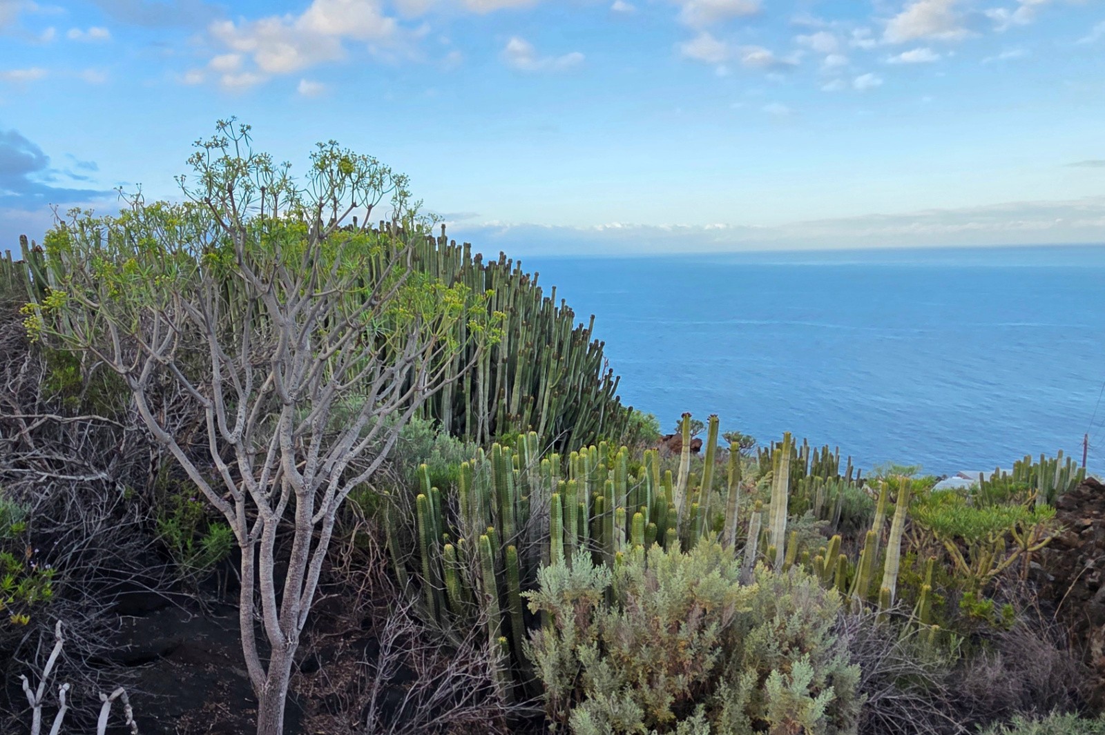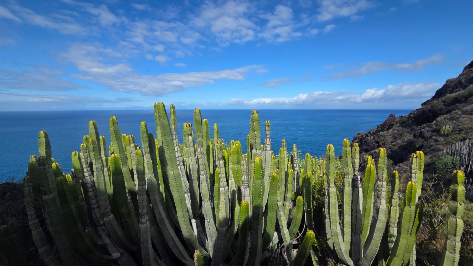 Pour le reste, une belle découverte avec une grande variété de paysages : sommets montagneux, zones volcaniques (cratères, coulées, …), pins des Canaries, forêts luxuriantes, cactus, bananeraie, mer, …