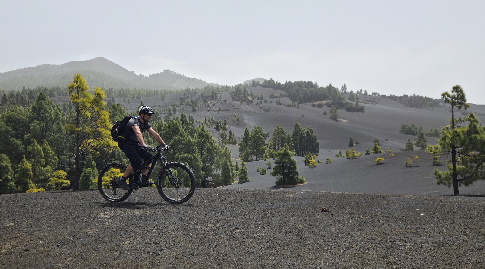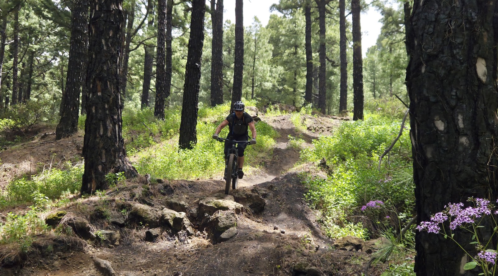 En bonus, après une petite balade du côté d’El Pilar, je profite d’avoir le vélo dans la voiture pour une descente bonus dans la forêt. Un beau sentier forestier, lui aussi bien caillouteux et cassant (mode "La Palma" 😜)