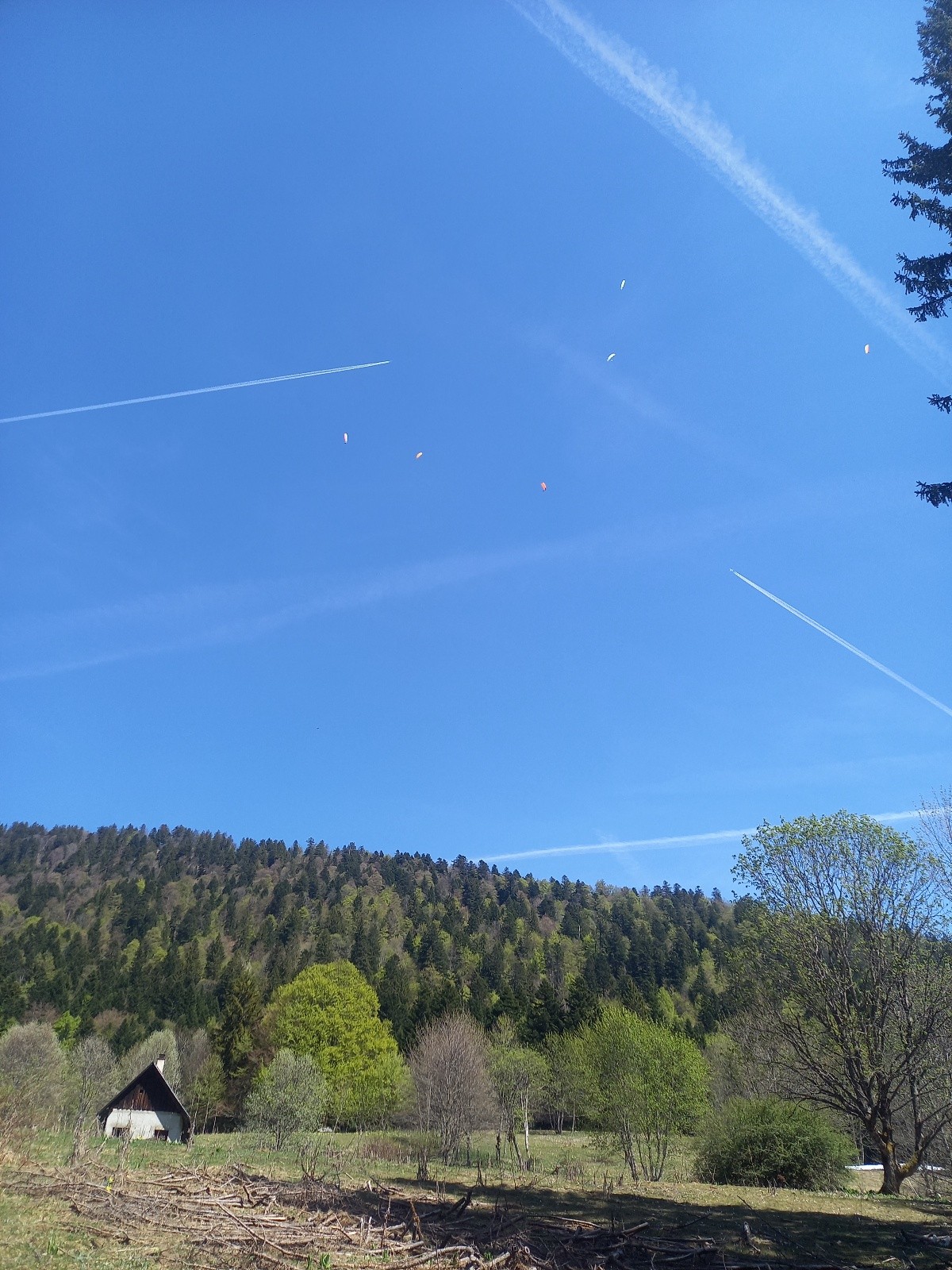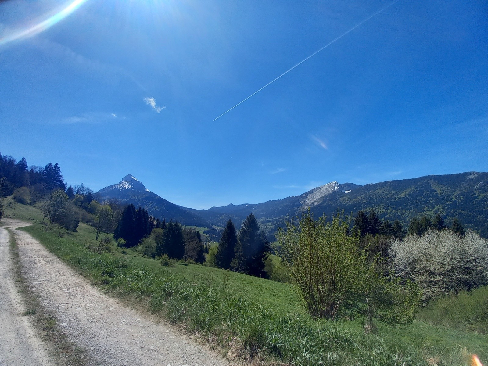 Un peu de route (encore fermée aux voitures) pour aller vers le col du Coq, puis l'Emeindras.Beaucoup de parapentes au dessus des falaises entre la Dent de Crolles et le St-Eynard. Avec la chaleur, je commence a avoir un peu soif. Retour direct à la maison, sans aller tricoter sur les sentiers du Sappey.